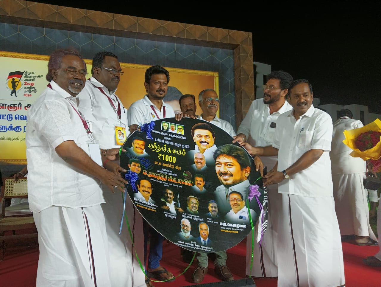குறிஞ்சி இல்லத்தில் சவூதி அயலக திமுகவின் மூத்த அமைப்பாளர் சேலம் சிக்கந்தர் மற்றும் ஒருங்கிணைப்பாளர் ஜவகர் சவரிமுத்து தயாரிப்பில், திரைப்பட இசையமைப்பாளர் தாஜ் நூர் இசையமைப்பில், கவிஞர் நாகூர் பாரியின் வரிகளில், கலைமாமணி Dr.இறையன்பன் குத்தூஸ் பாடிய “வந்தாச்சு வந்தாச்சு மாசம் ஆயிரம்” என்ற பாடலின் ஒலிப்பேழையை மாண்புமிகு விளையாட்டு மேம்பாட்டுத் துறை அமைச்சர் உதயநிதி ஸ்டாலின் வெளியிட, அயலக அணி செயலாளர் பாராளுமன்ற உறுப்பினரும் புதுக்கோட்டை MM.அப்துல்லா பெற்றுக் கொண்டார். உடன் பாராளுமன்ற உறுப்பினர் மற்றும் சவூதி அயலக அணி நிர்வாகிகள் ஆகியோர் உடன் இருந்தனர்.