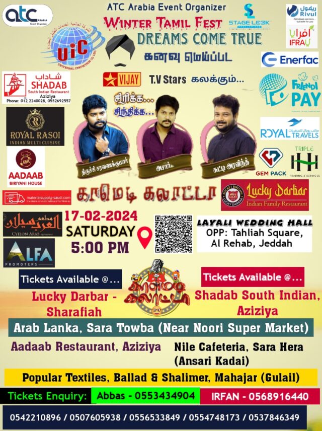 Home செய்திகள் சவூதி அரேபிய செய்திகள் ஜெத்தாவில் காமெடி கலாட்டா நிகழ்ச்சியில் சிறப்பு பட்டிமன்றம் நடைபெற இருக்கின்றது.
