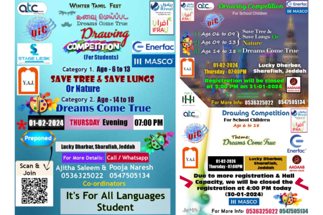 இதன் ஒரு பகுதியாகக் கடந்த வெள்ளிக் கிழமை தமிழில் பேச்சுப் போட்டி நடந்தது. வருகின்ற வியாழக் கிழமை ஓவியப் போட்டி நடைபெற உள்ளது.