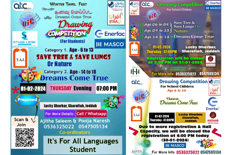 பல பெற்றோர்களின் வேண்டுகோளுக்கு இணங்க ஆங்கிலத்தில் பேச்சுப் போட்டியும், பாடல் திறமைகளைக் கொண்டு வரப் பாட்டுப் போட்டியும் நடத்தி முடிக்கத் திட்டமிட்டு வருவதாக இணை ஒருங்கிணைப்பாளர்கள் அஜிதா சலீம் மற்றும் பூஜா நரேஷ் தெரிவித்துள்ளனர்.