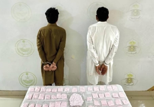 போதைப்பொருள் கடத்தல் நடவடிக்கையில் ஈடுபட்ட இரண்டு பாகிஸ்தானியர்களை ரியாத் பகுதி காவல்துறையின் குற்றப் புலனாய்வு மற்றும் தேடல் துறையினர் கைது செய்து, தனிநபர்கள் சட்ட நடைமுறைகளுக்கு உட்படுத்தப்பட்டு அடுத்த நடவடிக்கைக்காகப் பொது வழக்கறிஞருக்கு அனுப்பப்பட்டனர்.