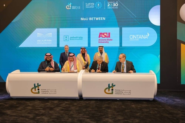 மனித திறன் முன்முயற்சி (HCI) மாநாட்டில் சவூதி கல்வி மற்றும் முதலீட்டு அமைச்சகங்கள் அரிசோனா மாநில பல்கலைக்கழகம் மற்றும் சின்டானா கல்வி நிறுவனத்துடன் ஒரு மூலோபாய கூட்டாண்மையில் நுழைந்து புரிந்துணர்வு ஒப்பந்தத்தில் (MoU) கையெழுத்திட்டுள்ளது.
