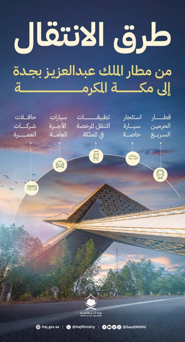 ஜித்தாவில் உள்ள கிங் அப்துல்லாஜிஸ் விமான நிலையத்திலிருந்து மெக்காவிற்கு போக்குவரத்து முறைகளை அமைச்சகம் மதிப்பாய்வு செய்தது.